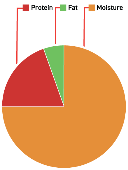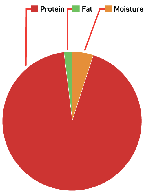 As in the example below, 1 kilogram fresh poultry will provide approximately 250 grams of nutrients compared to 1 kilogram of dehydrated poultry protein (chicken meal in North America) that provides a massive 940 grams of nutrients.