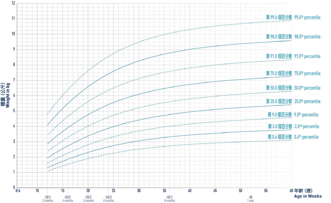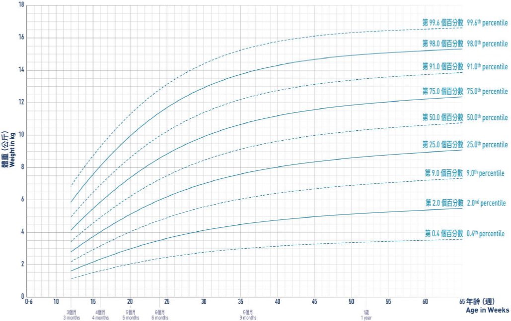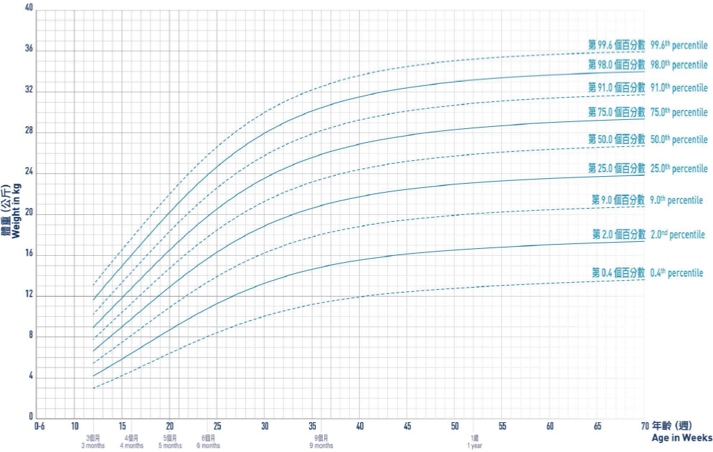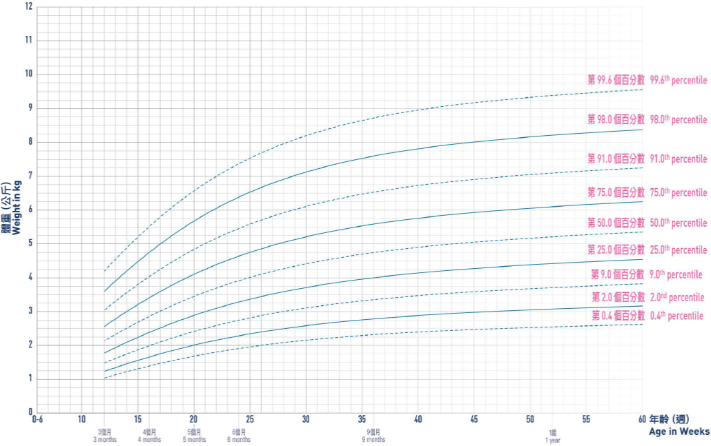 Please note that there is no ideal centile line, and growth can be considered normal provided that it tracks along the same centile line for 'channels' in between two centile lines over time.