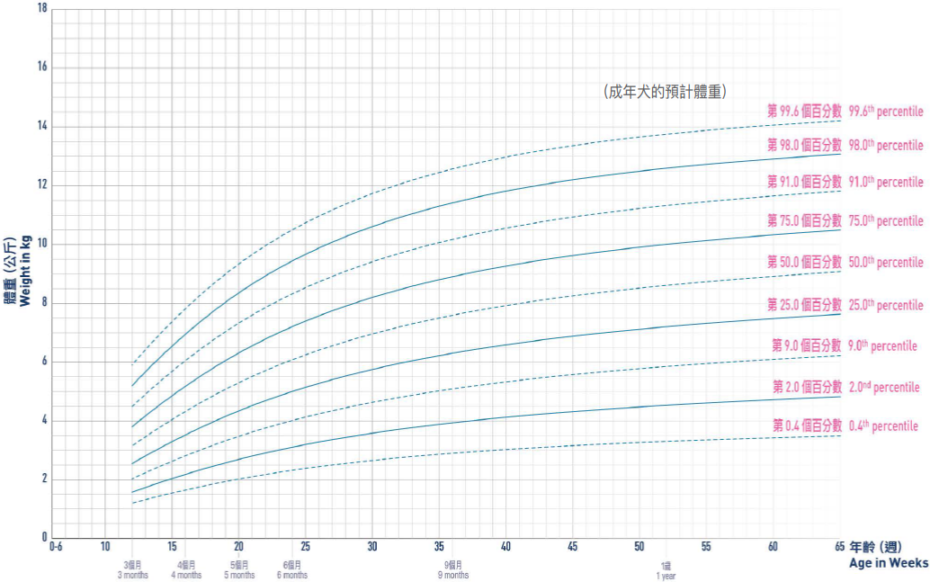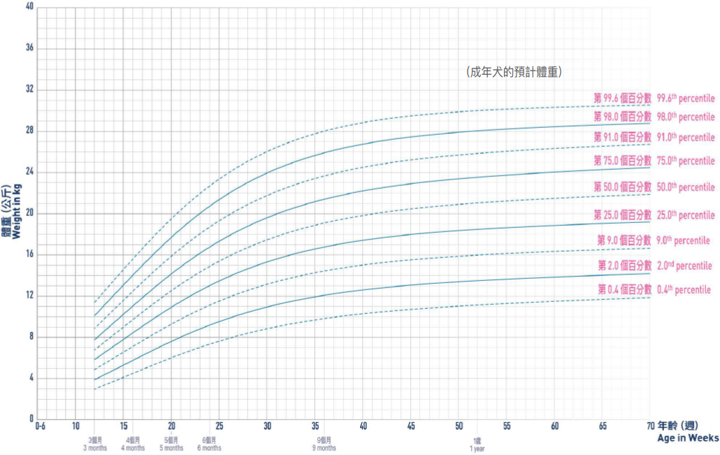 Remember that there is no ideal percentile; as long as your dog is consistently tracking a single percentile line (or the space between two lines), she is considered to be developing normally.